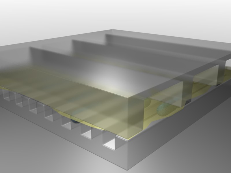 In this device, a predecessor to the mother machine we saw in a previous lesson, bacteria can grow in long channels embedded in PDMS, while media conditions can be rapidly changed. Using this device, one can then watch cells grow before, during, and after addition of an antibiotic, in this case ampicillin: