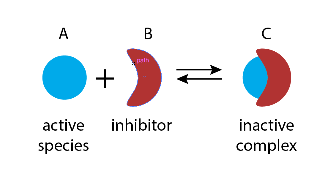To see how molecular titration produces ultrasensitivity consider two proteins, A and B, that can bind to form a complex, C, which is inactive for both A and B activities. This system can be described by the following reaction.