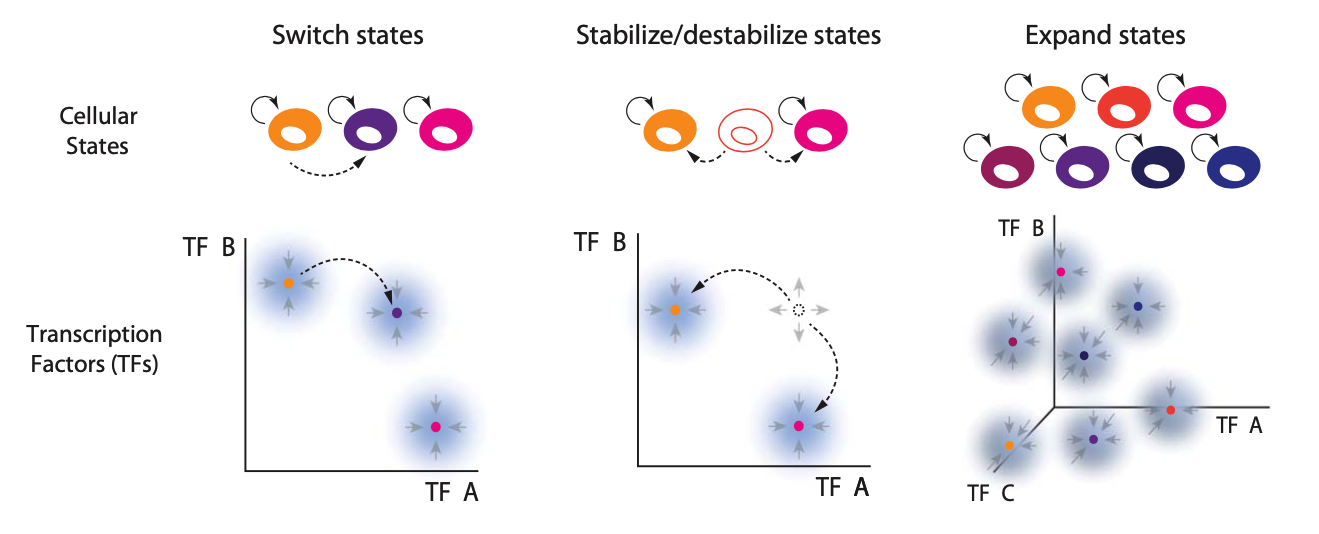 As a result, we now know, more than ever before, what cell types are out there and how to obtain them. Nevertheless, it has remained challenging to understand the cell fate control circuits that makes all of these incredible behaviors possible. More specifically, what architectures do those circuits use, how do they determine the repertoire of cell state that can exist in an organism? How do they control which states can differentiate to which others? And so on. In short, how do circuits specify what states can exist and how they can be controlled?