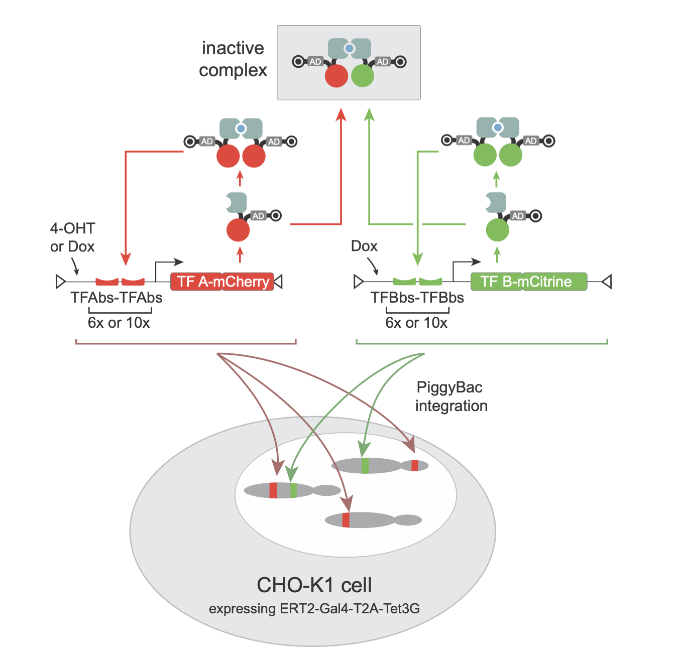 This diagram visually summarizes the design of one of a MultiFate transcription factor cassette.