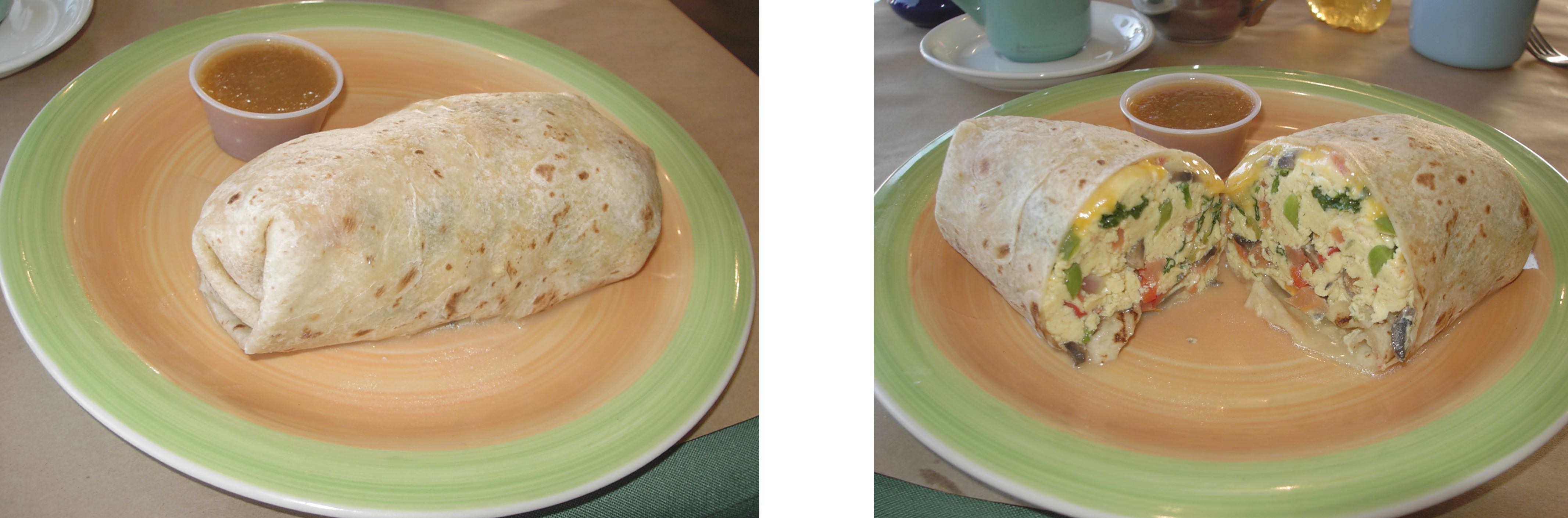 But first, consider the “model” of an E. coli cell depicted below. From the outside (left image), it appears as a simple rod-shaped object, encapsulating what one might incorrectly assume is a homogeneous well-mixed continuum of biochemical mush inside. However, if we were to slice open the cell (right image), the low copy numbers of certain molecules and their spatial heterogenetiy become apparent. Within each cell, the copy numbers and locations of different molecules can vary dramatically over time, just as they vary from cell to cell. Like burritos, no two cells are completely identical. (Unlike this burrito, most bacteria lack cheese in their periplasm.)