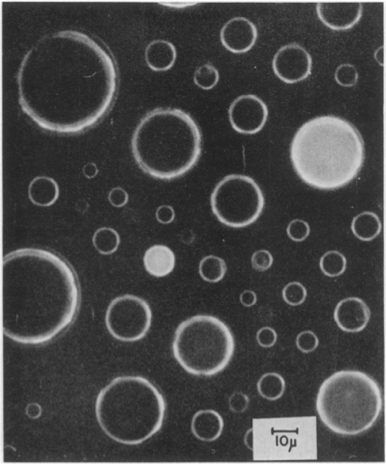 An early non-cellular demonstration of how fluctuations in molecule numbers between cells could produce large fluctuations in molecular states was performed by Boris Rotman (PNAS, 1961). Seeking to test whether individual enzyme molecules had identical activities, he diluted β-D-galactosidase down in liquid droplets, with a mean concentration of ~1 molecule per droplet and then assayed their activitity in each droplet. The activity measurement used a fluorescent substrate 6HFP, which glows green when it is cleaved by β-D-galactosidase.