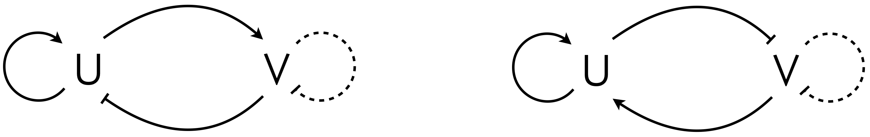 Our goal is to determine what type of regulation we need in the chemical circuit (i.e., to decide what type of arrowheads, activating or repressing, to use in the figure below, and what values of \(D_u\) and \(D_v\) are necessary to give spontaneous patterning of U and V).