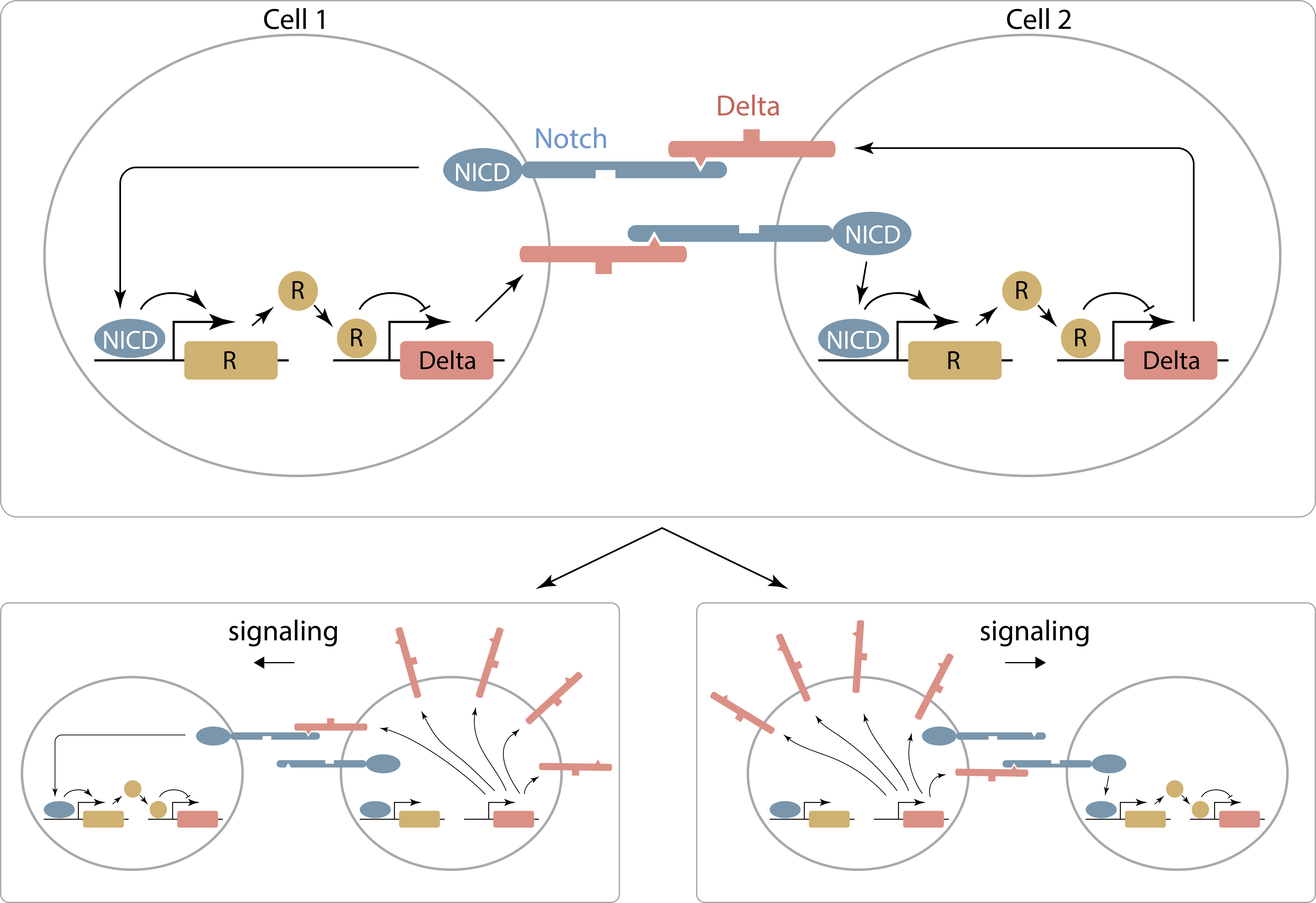 - Sprinzak et al. 2010, Cis-interactions between Notch and Delta generate mutually exclusive signalling states