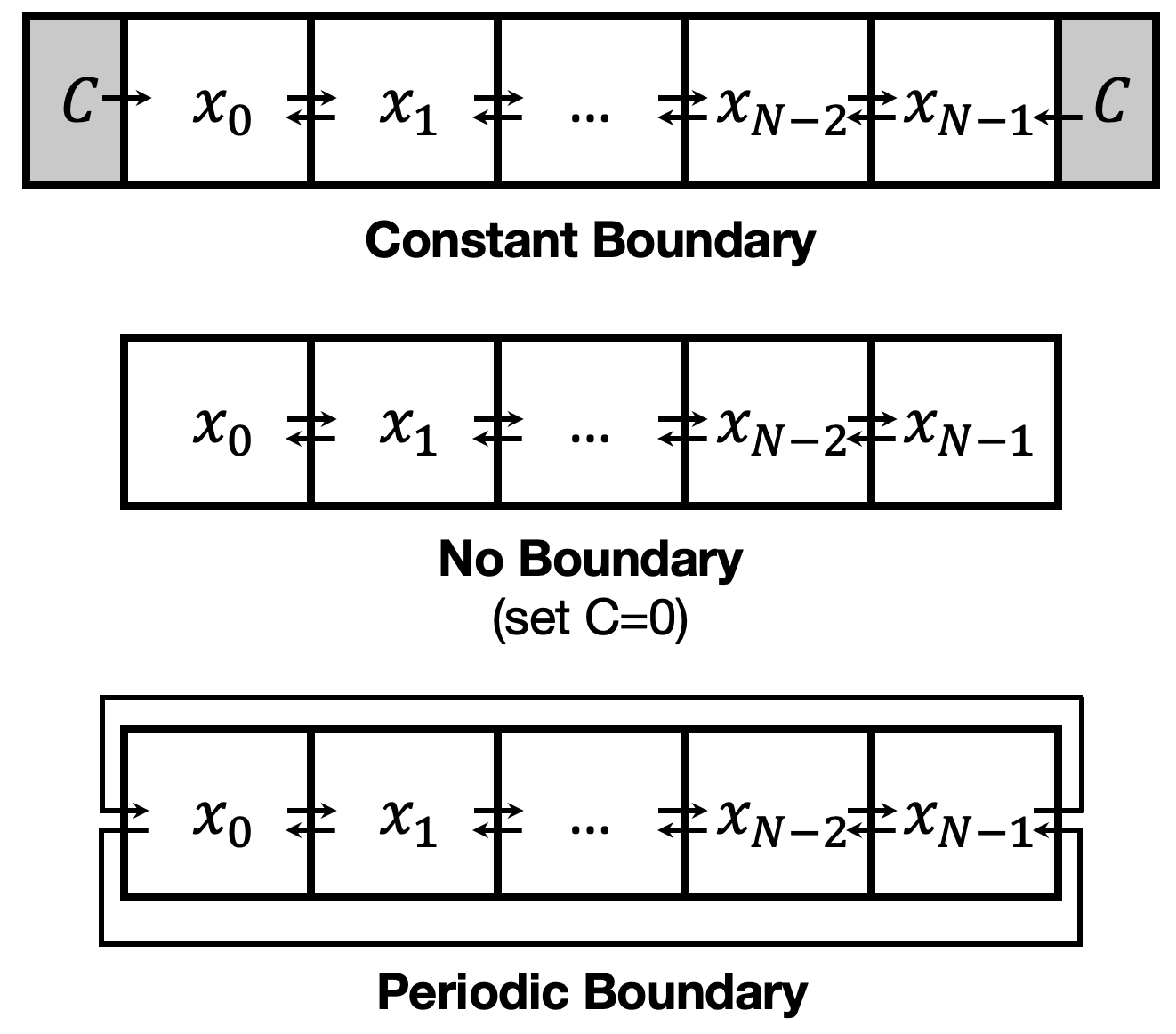 Another natural question to ask when comparing the two models is whether the presence of cis-inhibition allows the pattern to form more robustly with respect to the values of the system’s parameters. However, in order to perform a parameter search, we need to have an easily-calculatable low-dimensional representation of the pattern formation. When analyzing molecular oscillators like the Repressilator (Ch 9, 10), we did this by first determining the number of fixed points, and if there was only one, using linear stability analysis to determine if it is unstable. In this way we were able to rule out oscillations, although we were never able to guarnatee the presence of oscillations in this way.